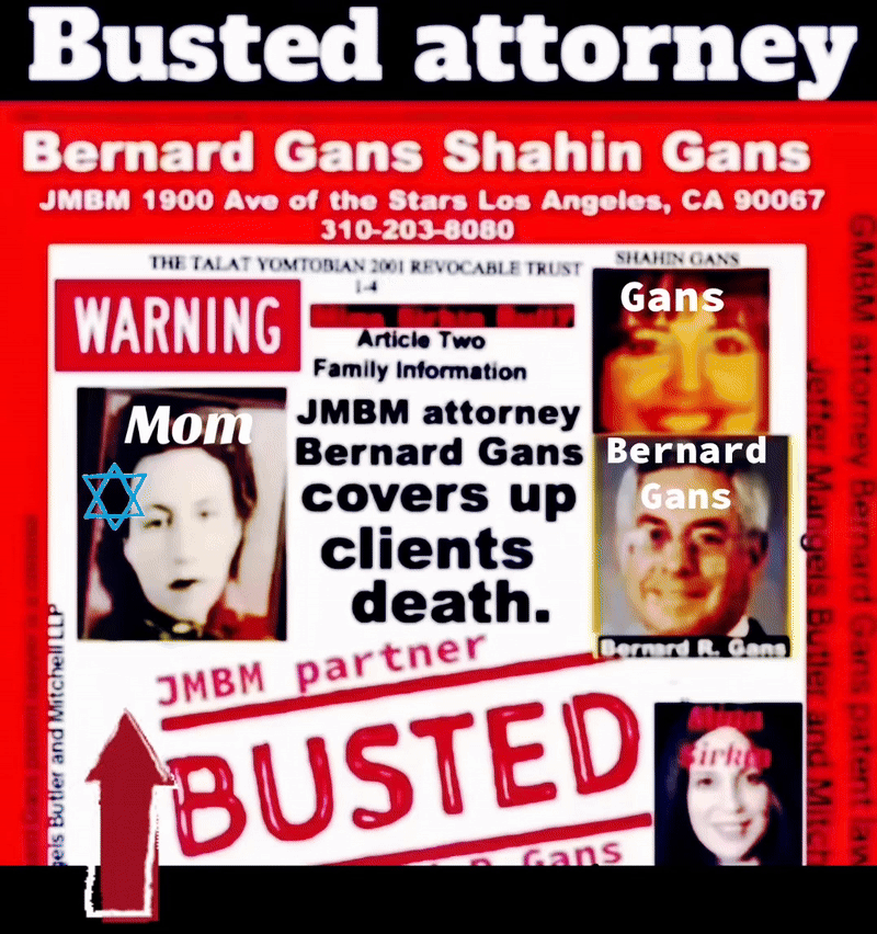 76 year old Century city JMBM busted attorney Bernard Reginald Gans known as Bernie graduate of Santa Barbara university married to Shahin Gans 50 years of success to satisfy his wife he made one stupid mistake and it all crashed down. Well done Bernie well done.Bernard R Gans Articles Jeffer Mangels Butler & Mitchel LLP